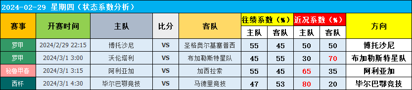 今天的比赛较多,笔者挑选了部份比赛出来作为本期的参考,希望能够打出对应的高概率方向!