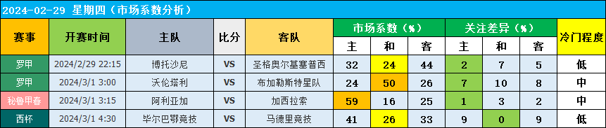 注:市场数据与关注差异均有出现深色标记的选项为大概率出现冷门!