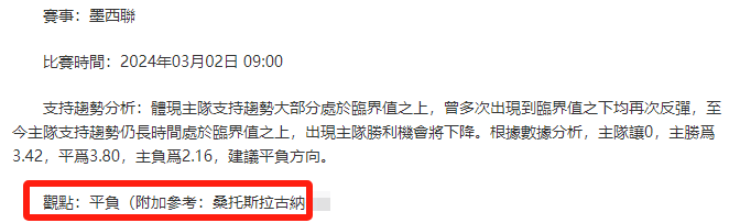 【解鎖內容為以上賽事支持趨勢預測圖展示,以及根據分析預測圖進行相對低機率方向觀點判斷。解鎖內容僅代表個人知識領域觀點,與本網站無關】