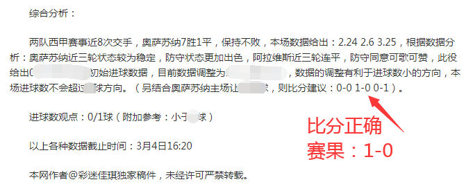 昨日亚冠赛事:C罗带领的利雅得胜利客战未取得进球,主队阿尔艾因1-0小胜,进球数未能如愿打出;西甲赛事:奥萨苏纳主场1-0力克阿拉维斯,比分方向完美打出。