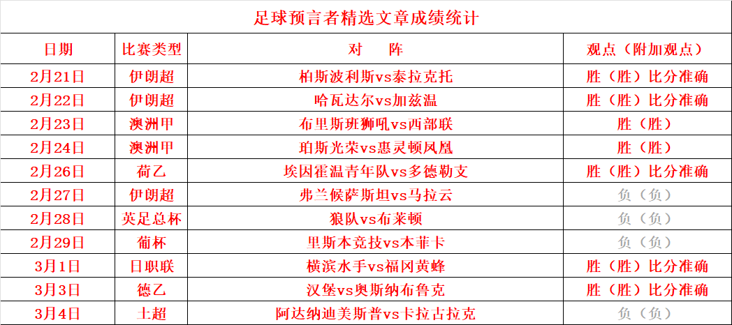 昨天成绩中规中矩,但是赞赏整体成绩5胜3,精选文章也取得11胜7胜的表现,而且5场比分也准确拿捏;笔者会保持高产的状态为大家精选出更多信心场事,大家也不要因为一点起伏而放弃关注,长期稳定的发挥才是大家想要结果;不想错过预言者每一场比赛,包周会是一个更合适的选择。