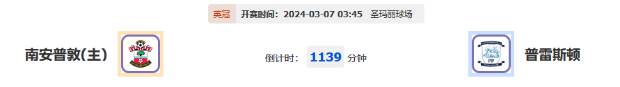 北京时间03月07日03:45,2023-2024 英格兰冠军联赛,南安普顿vs普雷斯顿,两队目前排名差距并不大,但是普雷斯顿整体表现稍好一些,今天比赛能否继续取胜呢?