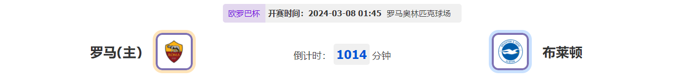 看点:罗马近期联赛取得2连胜,此役欧罗巴杯主场作战能否取得首回合胜利?布莱顿近期各项赛事遭遇2连败,此役作客能否止住颓势?