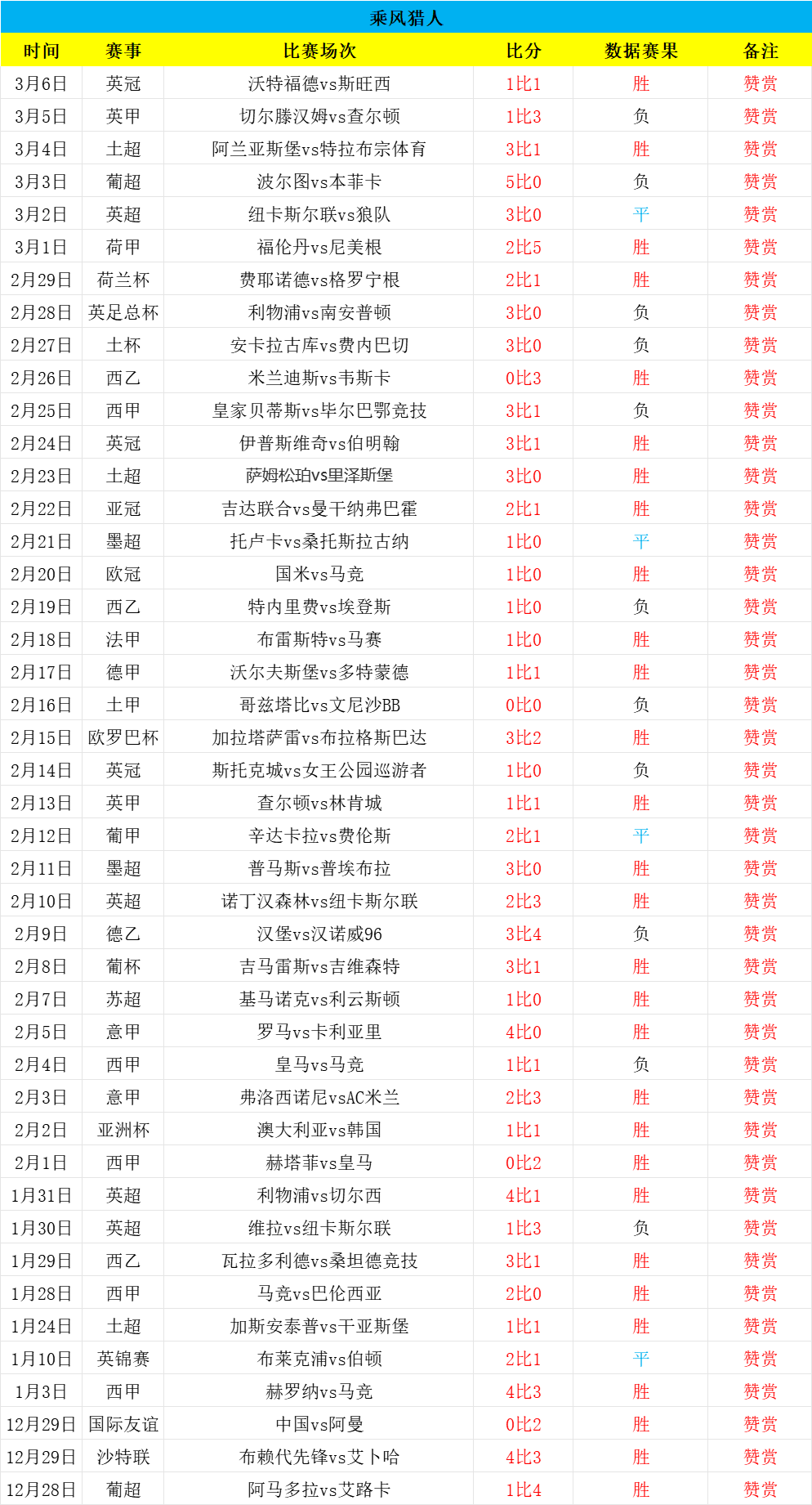 大家好,我是乘风猎人,职业数据分析师,足球经验丰富,研究足球数据数十载,期望能够乘风破浪,精准猎球制胜,欢迎朋友们长期关注!