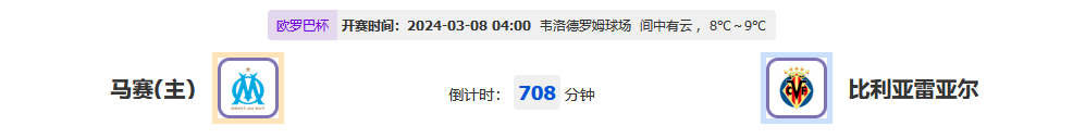 北京时间03月08日04:00,2023-2024 欧罗巴联赛杯,马赛vs比利亚雷亚尔,两队近期状态不错,今天比赛两队会有怎样变化呢?