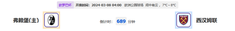 北京时间03月08日04:00,2023-2024 欧罗巴联赛杯,弗莱堡vs西汉姆联,两队近期表现有所差距,今天比赛弗莱堡能否取胜呢?