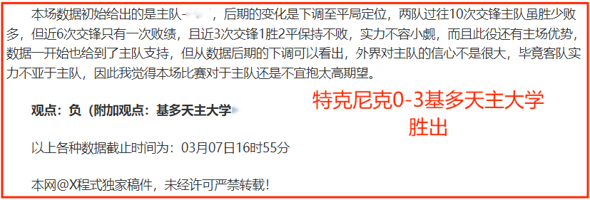 (温馨提示:观点回顾为已完场赛事的统计,并不能代表未来的观点预测结果走势,观点仅为其个人意见,与平.台无关。资讯仅供体育爱好者浏览,并不构成购.彩建议,任何人不得用于非法用途,请广大用户理性消费。)