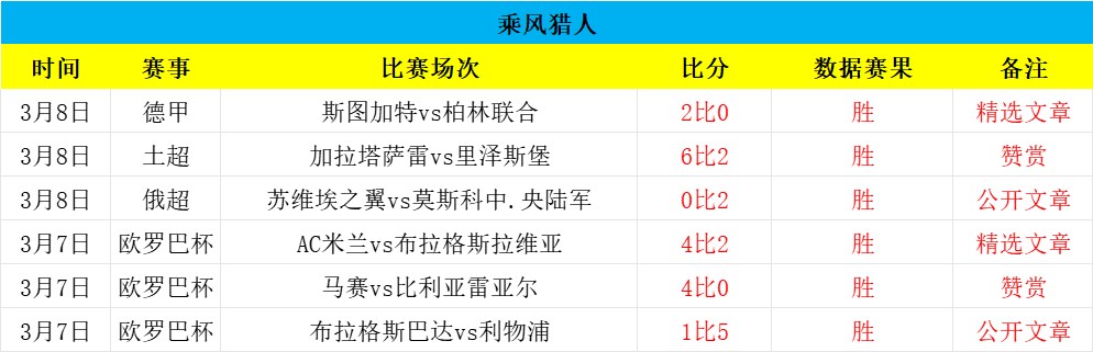昨日3场全胜,又继续大满贯,各项6连胜+王牌意甲14场1负!昨日赞赏土超实现6-2大胜,而公开俄超方向再拿下,精选德甲2-0告捷,又是全胜的一天!赞赏46场11负+长线近各项127场36负,是极强的状态,今日全力研究,争取拿下全胜,欢迎赞赏,再创佳绩!——今日重点参考乘胜追击!老铁们一起冲!