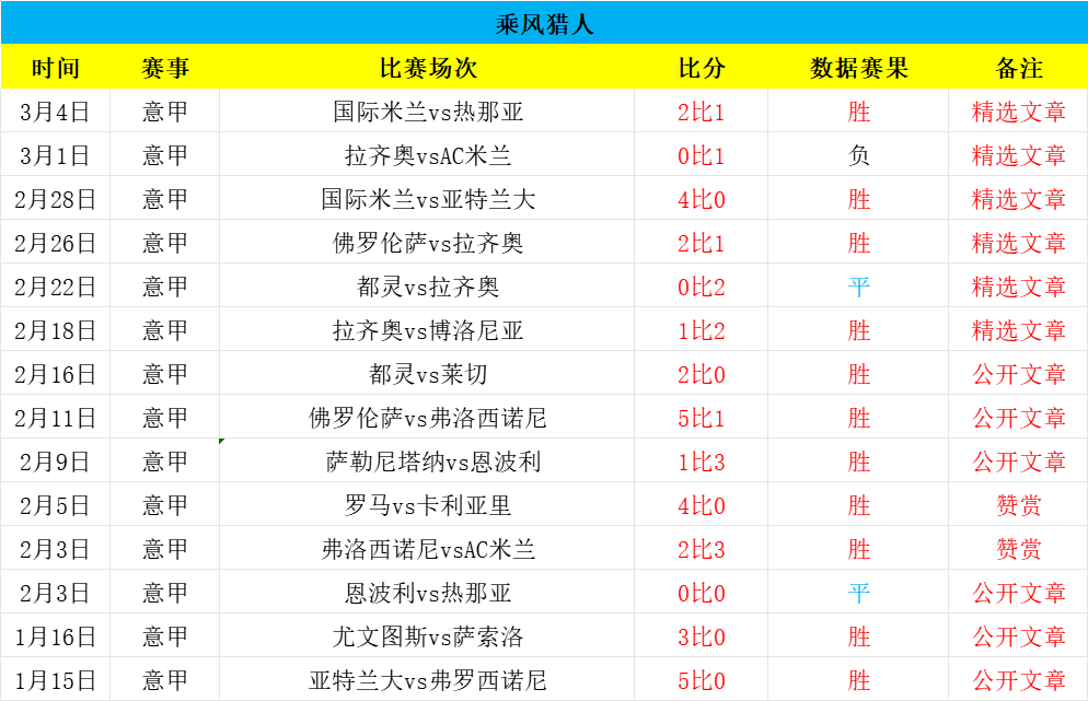 大家好,我是乘风猎人,职业数据分析师,足球经验丰富,研究足球数据数十载,期望能够乘风破浪,精准猎球制胜,欢迎朋友们长期关注!