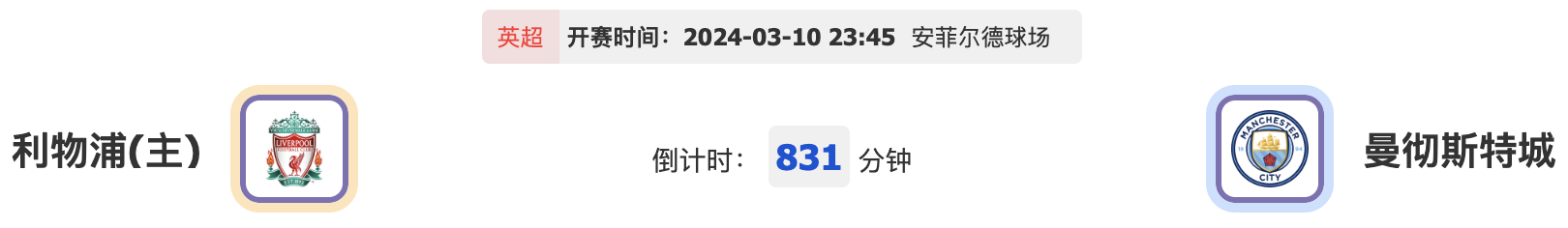 北京时间3月10日晚23:45,英超第28轮的比赛将会迎来一场焦点对决,利物浦队将会在主场迎来曼城队的挑战,谁能够在这场强强对决中拿下3分呢?
