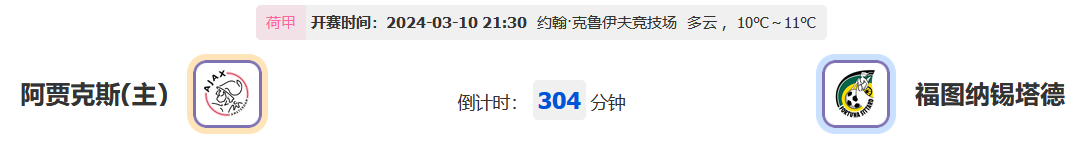 北京时间2024年03月10日21时30分,荷甲联赛2023-2024赛季第25轮比赛,阿贾克斯vs福图纳锡塔德,主队赛季再次重新返回了胜利轨道,逐渐回到了联赛的前列位置,本次主场对赛能否捍卫扩大胜利优势?作客的福图纳锡塔德处于一个比上不足比下有余的状态,本场作客挑战强队能否放松心态以下伐上?让我们一起期待!