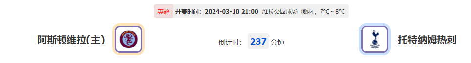 北京时间2024年3月10日21:00,英格兰足球超级联赛,本场比赛是阿斯顿维拉主场对战热刺,两队都有很强的战意,那么本场比赛谁能拿下比赛的胜利?