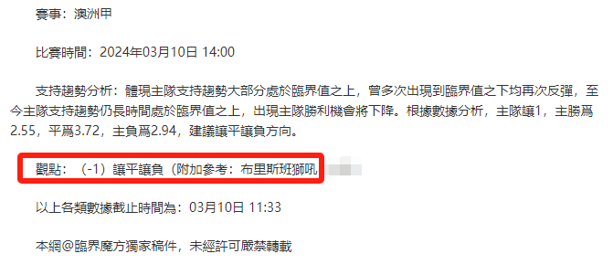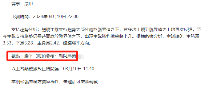 【解鎖內容為以上賽事支持趨勢預測圖展示,以及根據分析預測圖進行相對低機率方向觀點判斷。解鎖內容僅代表個人知識領域觀點,與本網站無關】