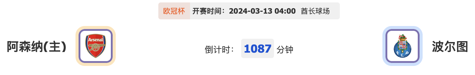 北京时间3月13日凌晨04:00,欧冠1/8决赛的比赛将会继续展开,阿森纳队将会在主场迎来波尔图队的挑战,球队能否主场取胜逆转晋级呢?