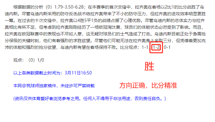 (温馨提示:观点回顾为已完场赛事的统计,并不能代表未来的观点预测结果走势,观点仅为其个人意见,与平.台无关。资讯仅供体育爱好者浏览,并不构成购.彩建议,任何人不得用于非法用途,请广大用户理性消费。)