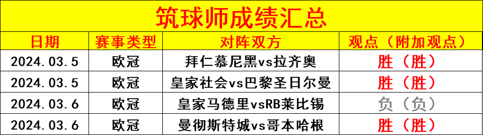 昨天送出的一场意甲比赛,结果观点及比分都顺利拿捏;今晚迎来周中的欧冠杯比赛,笔者今个月送出的4场欧冠取得4胜3的成绩,还是值得大家参考的;恭喜昨天选择支持筑球师的朋友,今天继续会秉承宁缺毋滥的精神,只推有质量有信心的比赛而不是数量搭够,确保每一场比赛都有胜率的;今天笔者同样挑选出信心场次,希望大伙们可以一起与筑球师研究胜利的观点。
