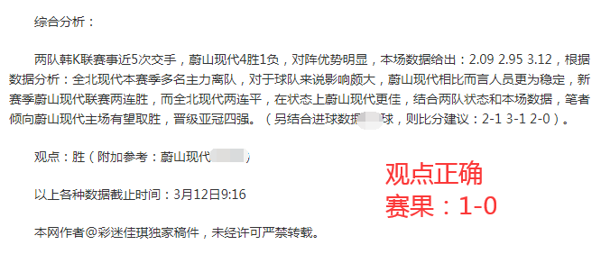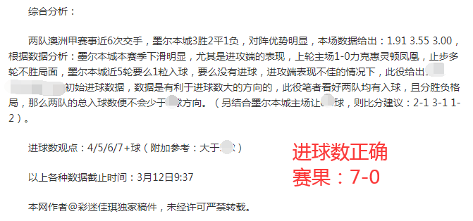 昨日澳洲甲赛事:墨尔本城主场7-0拿下西悉尼流浪者,取得一场酣畅淋漓的胜利,进球数正确;另外亚冠杯赛事一如既往的稳定发挥,蔚山现代主场1-0力克全北现代,挺进亚冠四强,观点正确,值得一提的是亚冠杯赛事近17场,胜率高达八成。