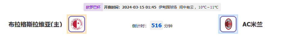 北京时间03月15日01:45,2023-2024 欧罗巴联赛杯:布拉格斯拉维亚vsAC米兰;两队首回合AC米兰以4-2占据优势,今天比赛回到客场会有怎样态度呢?