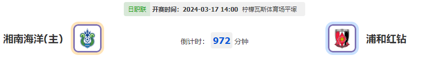 北京时间03月17日14:00,日职联第4轮赛事湘南海洋vs浦和红钻,湘南海洋拿到二连不败开始上升,他们能否在此役再次出击捍卫主场?浦和红钻如今状态仅是接近,他们能否在此役有力压制,此番挑战是否已做好准备?
