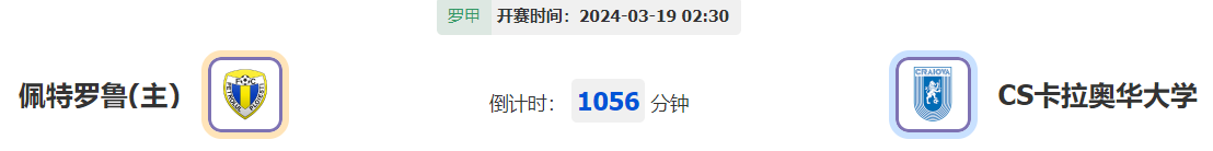 北京时间3月19日02:30,2023-24赛季罗马尼亚足球甲级联赛降级附加赛第1轮继续打响,佩特罗鲁主场迎战CS卡拉奥华大学。佩特罗鲁在各方面均处于劣势之下,本场初始力度十足,后市进一步获得外界支持,球队主场不败之势呼之欲出。