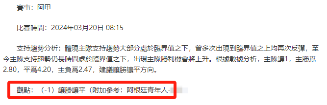 【解鎖內容為以上賽事支持趨勢預測圖展示,以及根據分析預測圖進行相對低機率方向觀點判斷。解鎖內容僅代表個人知識領域觀點,與本網站無關】