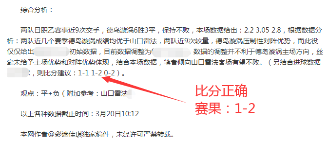 近几日比赛质量欠佳,昨日拿日职乙小试牛刀,德岛漩涡主场1-2不敌山口雷法,比分方向完美打出。