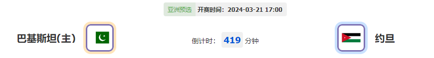 北京时间2024年03月21日17:00,此役是巴基斯坦与约旦历史的第一场对决,巴基斯坦跌至谷底毫无状态可言,此役能否抗衡对手捍卫主场?而约旦在亚州杯表现相当出色,此番客访也是信心大增,他们能否趁此机会夺取首胜?