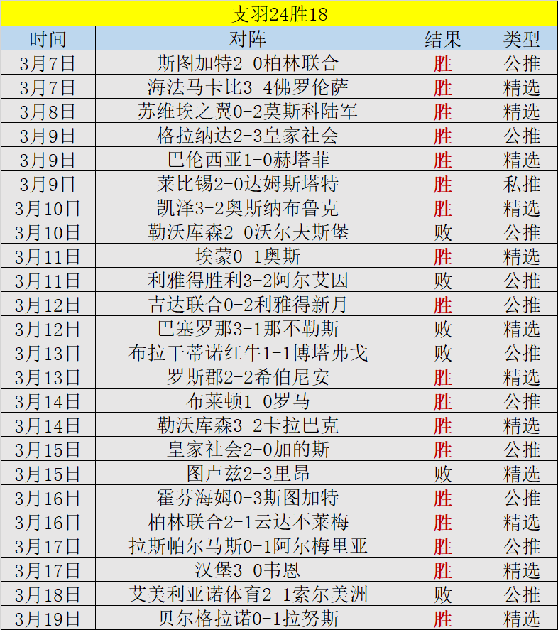 昨天的公推赛事推延一天,精选赛事:阿甲-贝尔格拉诺0-1拉努斯,支持客队方向没有问题。