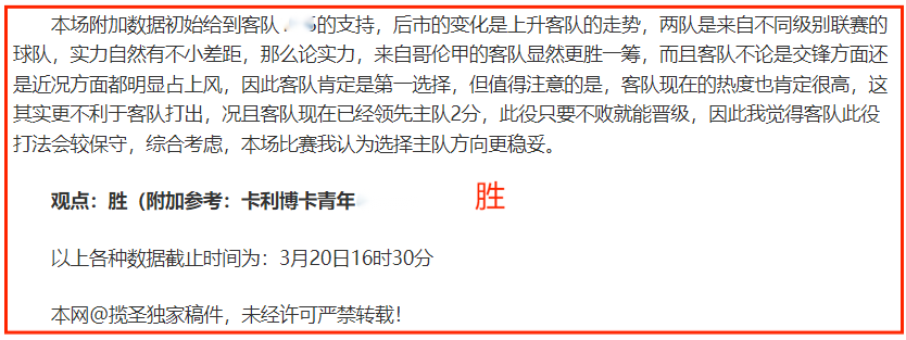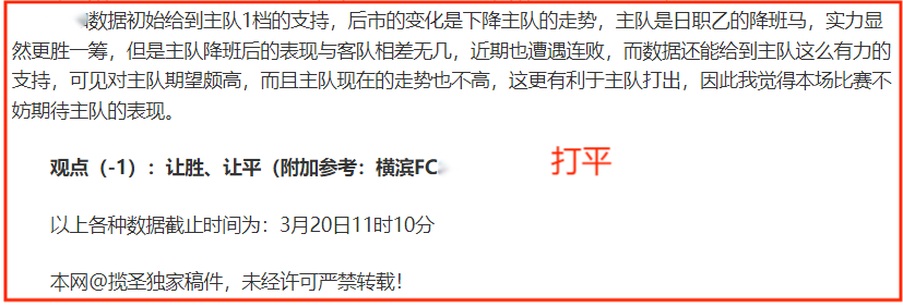 (温馨提示:观点回顾为已完场赛事的统计,并不能代表未来的观点预测结果走势,观点仅为其个人意见,与平.台无关。资讯仅供体育爱好者浏览,并不构成购.彩建议,任何人不得用于非法用途,请广大用户理性消费。)