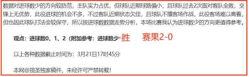 (温馨提示:观点回顾为已完场赛事的统计,并不能代表未来的观点预测结果走势,观点仅为其个人意见,与平.台无关。资讯仅供体育爱好者浏览,并不构成购.彩建议,任何人不得用于非法用途,请广大用户理性消费。)
