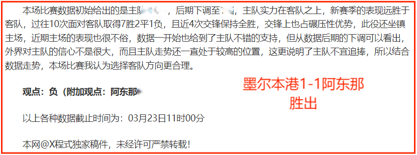 大家好!我是X程式,涉及足球领域10余载,对于各种联赛的性质具有丰富的分析经验,有着近5年的各类主流联赛的欧亚趋势数据库,擅长基本面的捕捉,对于各界走势变化的对比有独特的见解。