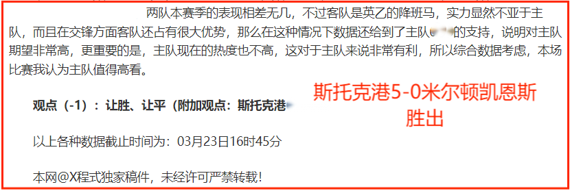 (温馨提示:观点回顾为已完场赛事的统计,并不能代表未来的观点预测结果走势,观点仅为其个人意见,与平.台无关。资讯仅供体育爱好者浏览,并不构成购.彩建议,任何人不得用于非法用途,请广大用户理性消费。)