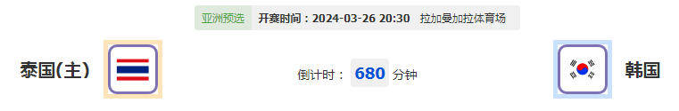 北京时间2024年3月26日20:30,2023-2025 世界杯亚.洲区预选赛,泰国vs韩国,此役是预选赛第二圈C组第四轮较量,韩国前三轮取得2胜1平不败战绩,积7分领跑C组,此役客场来到拉加曼加拉体育场迎战泰国,两队如何对峙?下面由本作者为大家做详细阐述。