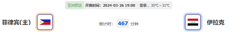 北京时间2024年03月26日 19时00分,亚预赛第4轮的赛事,菲律宾首回合扛住压力的表现令人还算满意,伊拉克会有再胜的底气?让我们一起拭目以待!