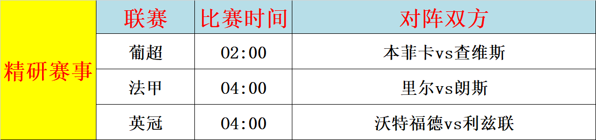1、本菲卡vs查维斯:本菲卡目前联赛20胜4平2负,积64分,排名联赛第2,距离榜首只有1分的差距,但多赛了1场,所以球队不容有失,查维斯目前联赛4胜7平15负,积19分,排名联赛垫底位置,保级压力甚大,双方的实力悬殊,那么此战本菲卡轻松取胜?还是会留力?因为几天后有杯赛的半决赛次回合。