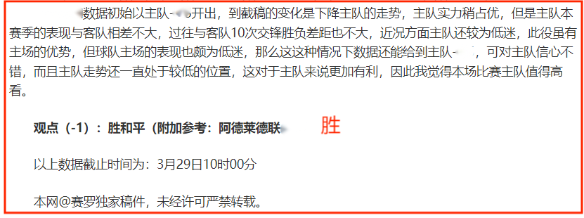 (温馨提示:观点回顾为已完场赛事的统计,并不能代表未来的观点预测结果走势,观点仅为其个人意见,与平.台无关。资讯仅供体育爱好者浏览,并不构成购.彩建议,任何人不得用于非法用途,请广大用户理性消费。)