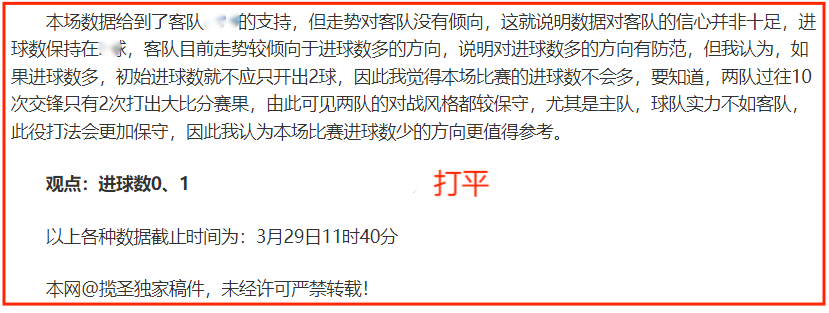 (温馨提示:观点回顾为已完场赛事的统计,并不能代表未来的观点预测结果走势,观点仅为其个人意见,与平.台无关。资讯仅供体育爱好者浏览,并不构成购.彩建议,任何人不得用于非法用途,请广大用户理性消费。)