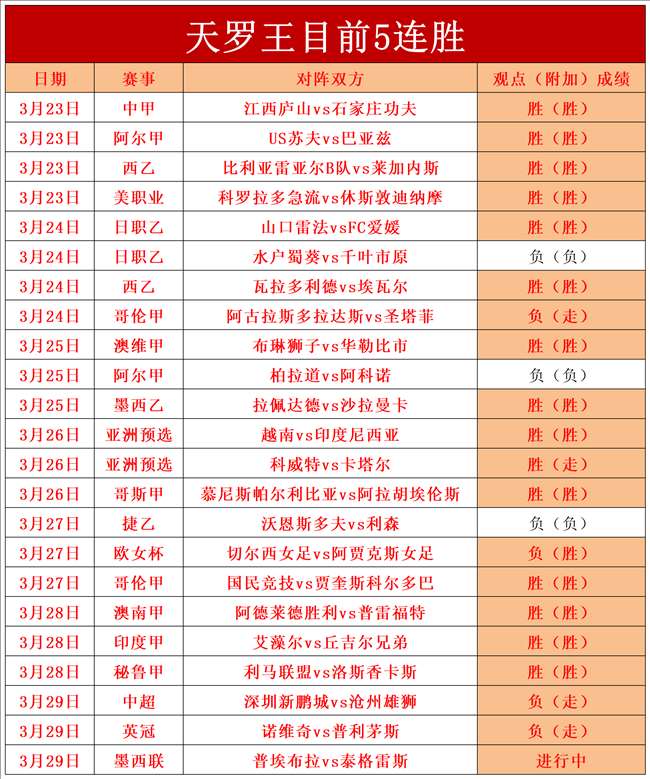 昨天3场比赛有一场还在进行中,其余2场比赛打平,目前依旧是5连胜的佳绩(走的忽略不计),笔者状态依旧火热,今天我们继续追击。
