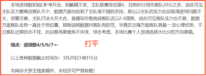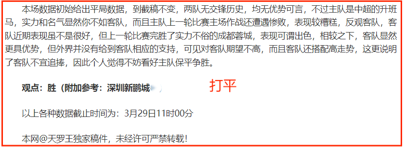 (温馨提示:观点回顾为已完场赛事的统计,并不能代表未来的观点预测结果走势,观点仅为其个人意见,与平.台无关。资讯仅供体育爱好者浏览,并不构成购.彩建议,任何人不得用于非法用途,请广大用户理性消费。)