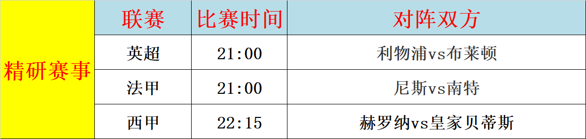 1、利物浦vs布莱顿:利物浦目前联赛19胜7平2负,排名联赛第2,和榜首的阿森纳同分,球队不容有失,布莱顿目前联赛11胜9平8负,排名联赛第9,近期双线作战取得连胜,利物浦历史面对布莱顿,没有优势,本场利物浦能顺利拿到3分吗?