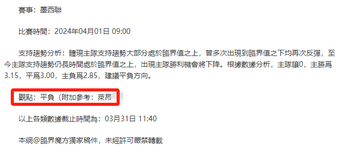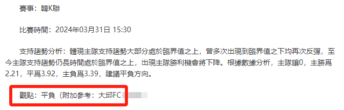 【解鎖內容為以上賽事支持趨勢預測圖展示,以及根據分析預測圖進行相對低機率方向觀點判斷。解鎖內容僅代表個人知識領域觀點,與本網站無關】