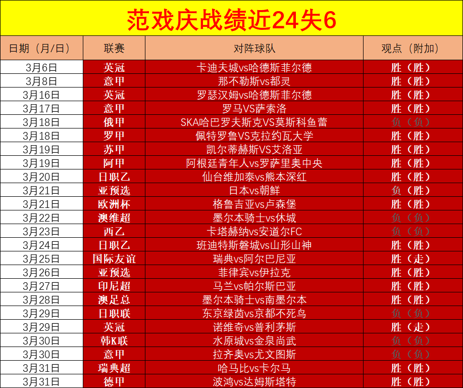 (温馨提示:观点回顾为已完场赛事的统计,并不能代表未来的观点预测结果走势,观点仅为其个人意见,与本.网无关。资讯仅供体育爱好者浏览,并不构成购.彩建议,任何人不得用于非法用途,请广大用户理性消费。)