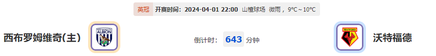 北京时间2024年04月01日 22时00分,英冠联赛第40轮的赛事,西布罗姆维奇不败的势头表现延续,沃特福德会有反击底气?让我们一起拭目以待!