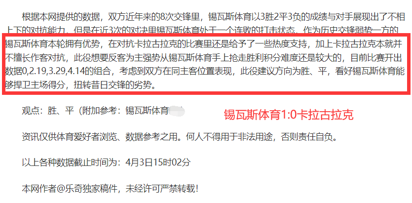 (温馨提示:观点回顾为已完场赛事的统计,并不能代表未来的观点预测结果走势,观点仅为其个人意见,与平.台无关。资讯仅供体育爱好者浏览,并不构成购.彩建议,任何人不得用于非法用途,请广大用户理性消费。)