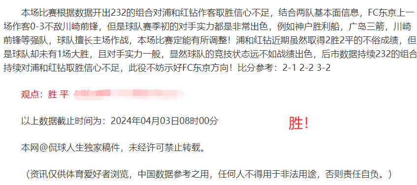 (温馨提示:观点回顾为已完场赛事的统计,并不能代表未来的观点预测结果走势,观点仅为其个人意见,与平.台无关。资讯仅供体育爱好者浏览,并不构成购.彩建议,任何人不得用于非法用途,请广大用户理性消费。)