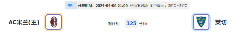 北京时间04月06日21:00,意甲第31轮赛事AC米兰vs莱切,AC米兰状态是相当地火热,他们能否在此役捍卫主场压制对手?莱切摆脱低迷势头开始回升,他们能否在此役有力抗衡,此番挑战是否已做好准备?