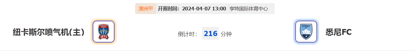 看点:纽卡斯尔喷气机近期难求一胜,此役主场状态能否好转?悉尼FC上一场作客1-1战平珀斯光荣,此役连续客场作战能否顺利取胜?