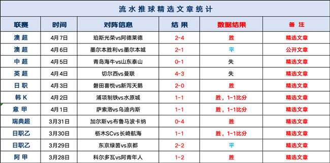 【日韩教主】独家日韩比赛一手资讯,完善的比赛模型库,解读精准独到!回顾:流水赞赏1胜1失,摩纳哥1-0雷恩,精选解读珀斯光荣2-4阿德莱德,方向强势跑出。流水赞赏曾连续6周周榜第一,更是有156天总体正确率近7成(不含走)的长期稳定发挥,今天继续一起采摘果实!!!