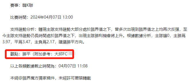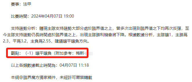 【解鎖內容為以上賽事支持趨勢預測圖展示,以及根據分析預測圖進行相對低機率方向觀點判斷。解鎖內容僅代表個人知識領域觀點,與本網站無關】