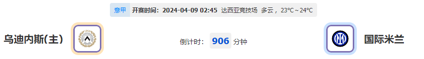 北京时间2024年04月09日 02时45分,意甲联赛第31轮的赛事,乌迪内斯发挥低迷状态毫无反弹迹象,国际米兰新胜下会有抢胜的底气?让我们一起拭目以待!